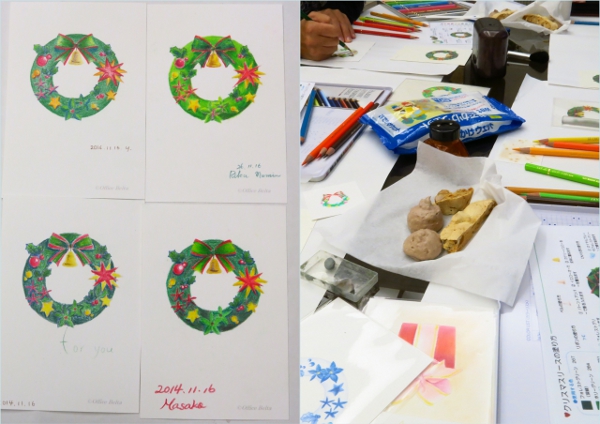 クリスマスにぴったりの塗り絵をします。