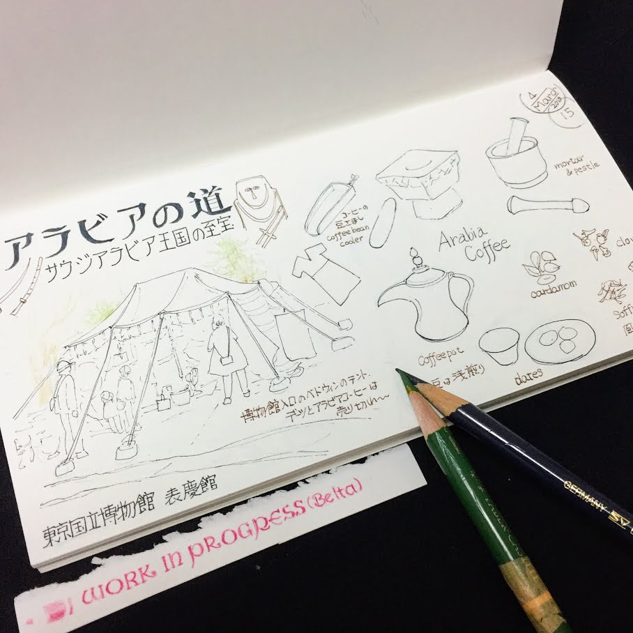 数日前に行った東京国立博物館の「アラビアの道展」を描いたので、