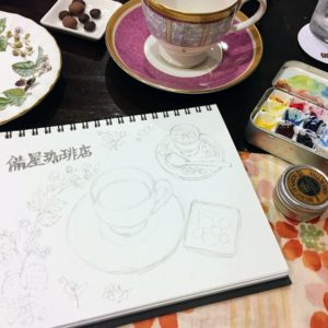秋にはこんなふうに、カフェでスケッチする会をしようと