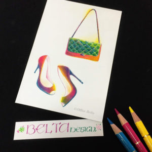 三色で塗ったハイヒールとバッグ。