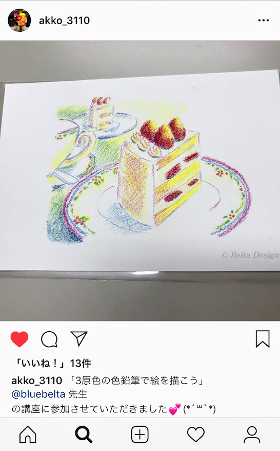 【みなさまの作品】三色の色鉛筆で描いたケーキ