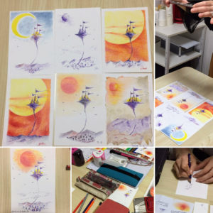 塗り絵教室は2時間でポストカードサイズの作品を1枚仕上げます。