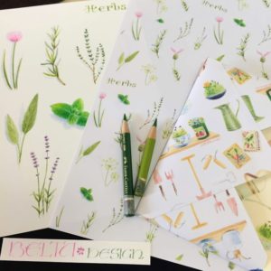 先日から描いていたハーブやガーデニングツールのイラストを使って