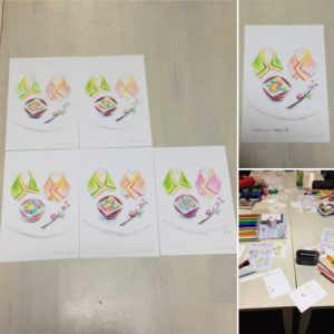 他の教室同様、2時間で1枚ポストカードサイズの作品を仕上げます。