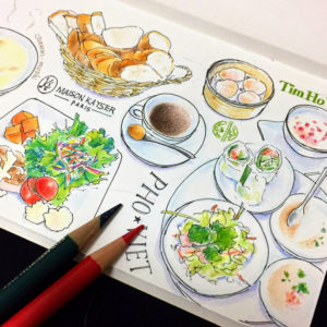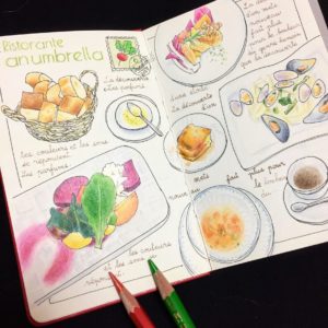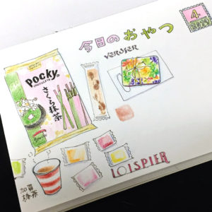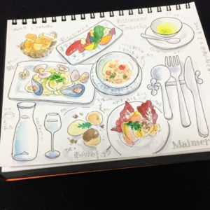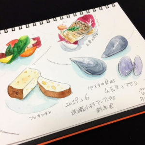 食べる前に大急ぎで描いたのがこちら。どちらも水彩です。