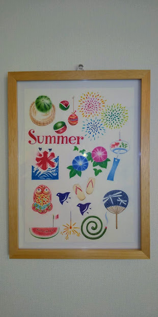 夏の塗り絵を仕上げられて、額に入れて飾ってくださているそう。