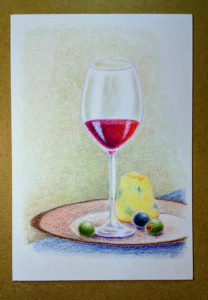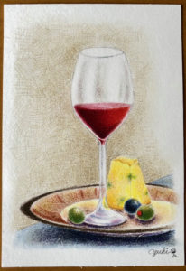 パイロットの万年筆 カクノとフリクション色鉛筆で描いた、