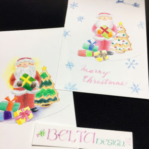 強い色はサンタさんが持っているプレゼントのリボンだけ。