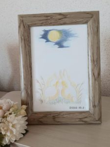 お月見に月うさぎ塗り絵を飾る、うきうきしますね。