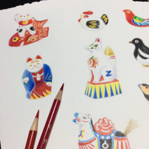 昨年末からコツコツ描いている郷土玩具たち。