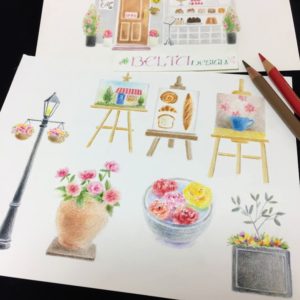 街の塗り絵はお店屋さんを引き立てる小物が必要!