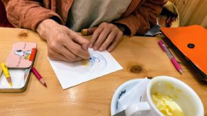 塗り絵の後は、ご自分で描くこともできるように、と思うから。