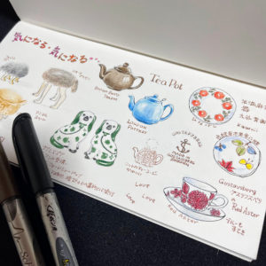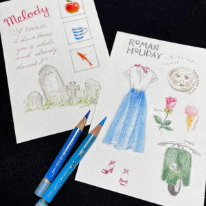 ポストカードサイズの下絵2枚、塗り方レシピ、見本の3点セットです。