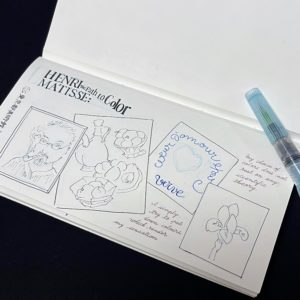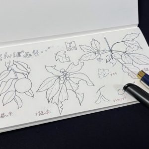 ペンと色鉛筆でおやつ絵日記を描きます。