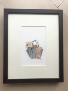 ペンと色鉛筆でおやつ絵日記を描きます。