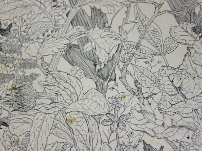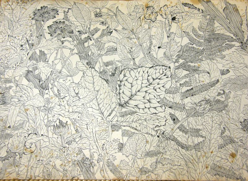 ペンを使って紙を葉っぱで埋め尽くせ、という課題でした。