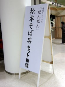 だんだんの蕎麦屋さん(島根/松江) 2010/4/19 月曜日 BeltaLeave a comment 打ち合わせ先の方が、 「蕎麦屋さん、オープンですよ!」 と教えてくださいました。 松江が舞台となった NHKの朝のドラマ「だんだん」で使われた 蕎麦屋さんのセットを使ったお蕎麦屋さんが、 スティックビルにできたそう。 あいにく、おなかがいっぱいだったので、 写真だけ撮らせていただきました。 これからたくさんの方が いらしてくださいますように。 お店の入り口です。 看板です。 セットを再現したとありますね。 (in 大阪)