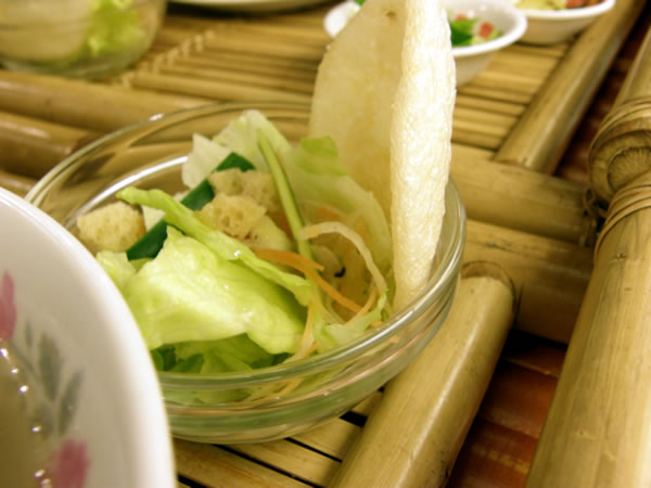 えびせん付きのサラダはさっぱりた甘酸っぱい味。