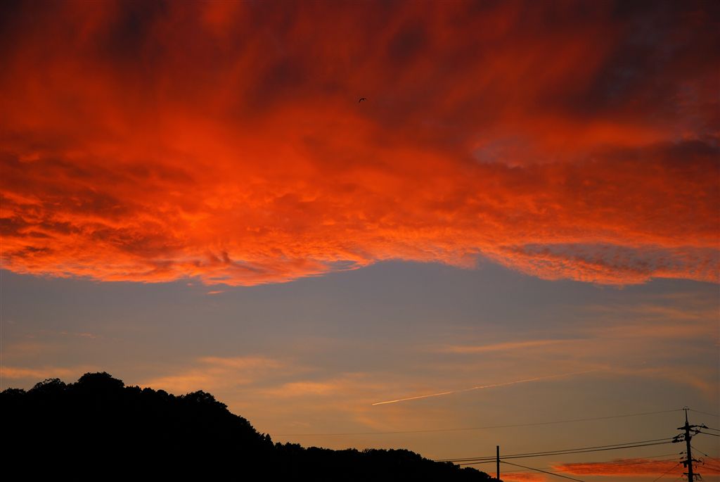岩田さんからの写真 梅雨の夕焼け 2008/7/15 火曜日 BeltaLeave a comment 雲南市の岩田雄二さんから、 美しい夕焼けの写真をいただきました。 ご自宅の木戸道から撮られたそうですが、 空がこんな色になるところにお住まいなんて、 すてきですね。 青空~。 空が燃えてる 紅の空。ドラマチックです。 岩田さま、いつもはっとする写真、 ありがとうございます。