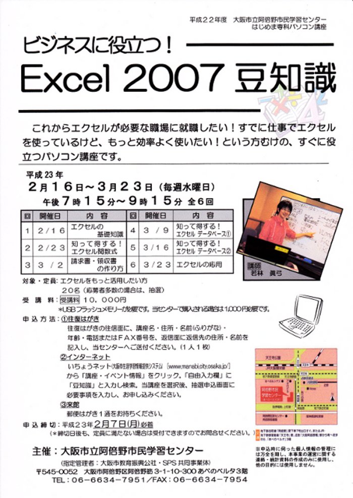 2月から阿倍野市民学習センターでパソコンの講座を