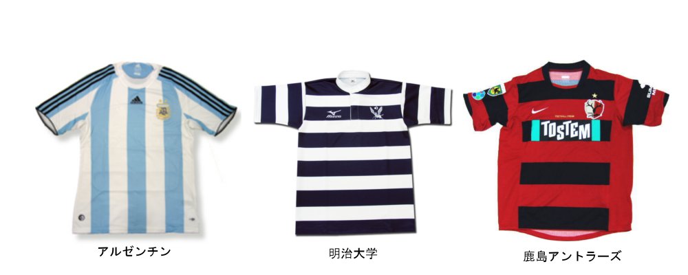 (例外もあります。鹿島アントラーズはサッカーですが、横縞ユニフォームです)