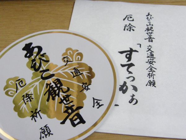 あびこ観音の厄除け 2011/2/16 水曜日 BeltaLeave a comment 友人のNAOさまにいただきました。 移動が多いBeltaに交通安全のお守りと。 グッドタイミング。 いつもありがとうございます。 感謝。 (in 大阪)