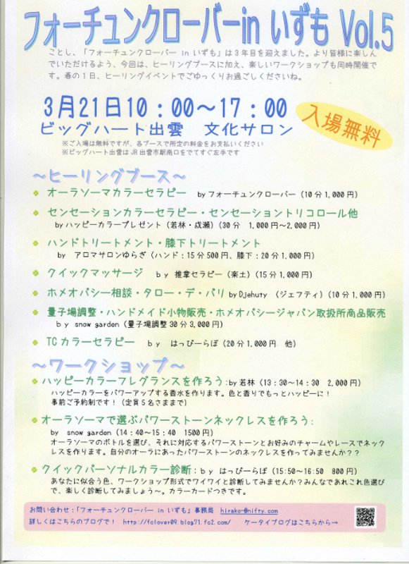 ◆ ヒーリングイベント フォーチュンクローバー(島根/出雲)