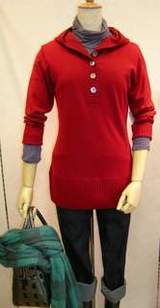 > 赤は洋服の中でも、いろんな着こなしができる色。