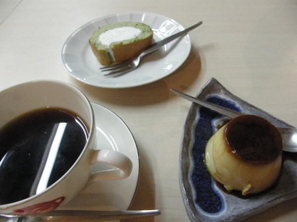 手作りプリンと手作りよもぎロール。