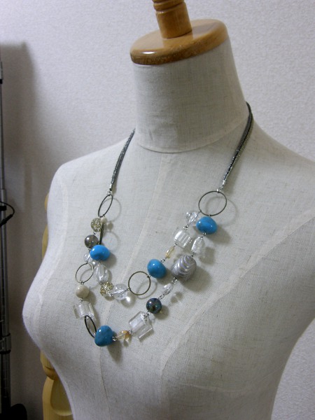 ターコイズとクリアなビーズを組み合わせたネックレスです。