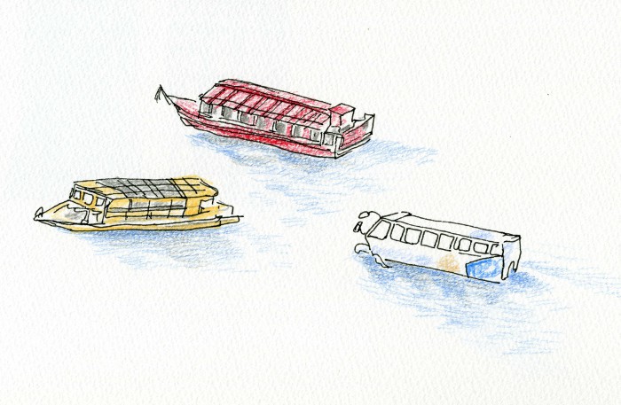 水の上をバスが沈まず、