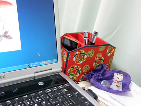 赤いペンスタンド 2009/1/6 火曜日 BeltaLeave a comment マイミクのキャンディさんこと北川さんから、 ペンスタンドをいただきました。 パソコンの右手、赤い和風のペンスタンドです。 さっそくペンを立てて、写真をぱちり。 長崎で買ったガラスの招き猫を配置すると、 あっという間に和の空間のできあがり。 一緒にいるのは、NLPのトレーナーコースで、クリスにいただいたガラス。 Beltaのお守り空間になりました。 北川さま、ありがとうございました。