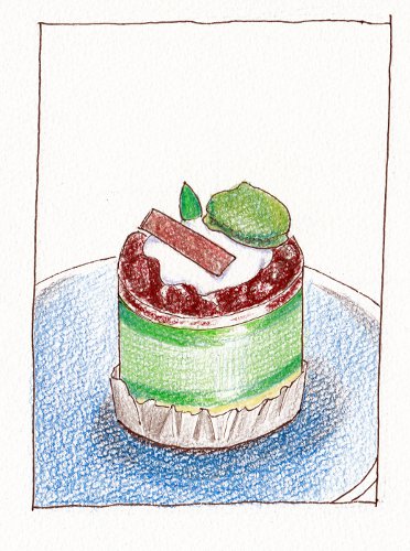 ほっと一息 2011/10/21 金曜日 BeltaLeave a comment 昨日、お客さまからのおいしい差し入れ。 3人でボクシングの話題で盛り上がり~(笑) 松江のお菓子屋さん「ディメル」の お抹茶のケーキです。 上に乗っているのは、抹茶味のマカロン。 ケーキは小豆がたっぷりで、いとおいし♪ >Tさま、Sさま ごちそうさまでした。 楽しい時間をありがとうございます。 スケッチの歪みはご愛敬。 次回から、きちんと当たりを取って描きますね。 (in 松江)