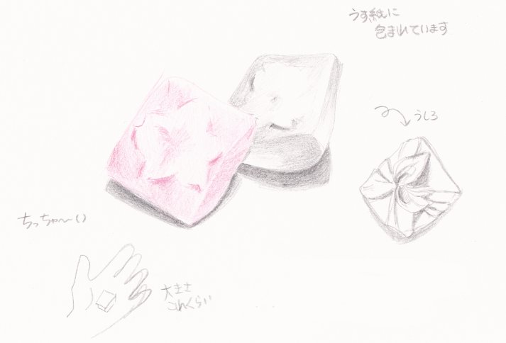 その薄紙を通して、表面の桜模様が浮き出ており、