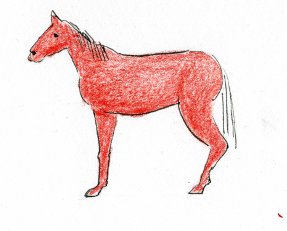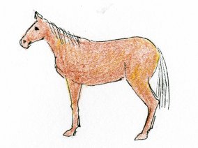 紙いっぱいの大きな馬を茶色に塗って、できあがり。