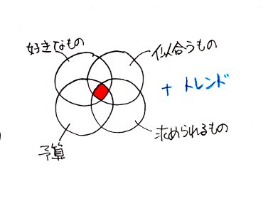 「好き」と「似合う」と「求められるもの(TPO)」と「予算」の交点、