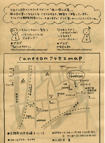 雨に唄えば展は、中崎町のカフェ「カヌトン」で。