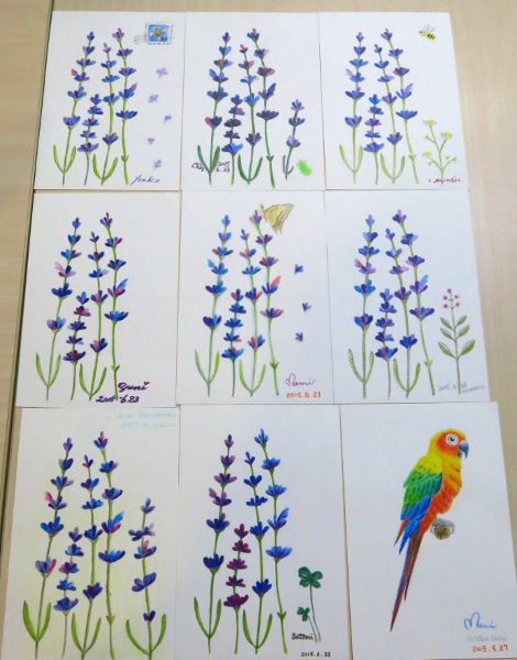 ラベンダーを描き足した方、アゲハチョウ、ミツバチ、