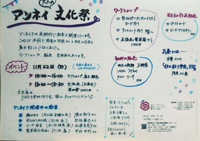 11月22日、23日 お世話になっているカフェ アンネイさんの教室展です。