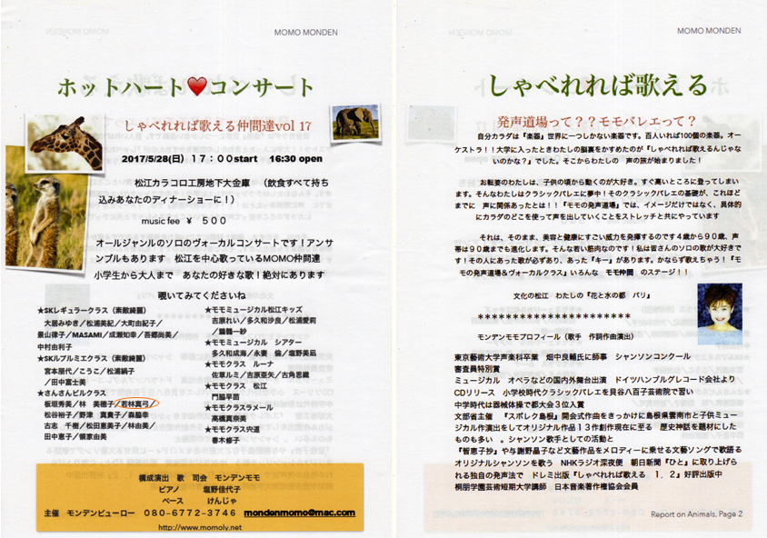 そのモモ先生のお歌のクラスが集まってのコンサートに、
