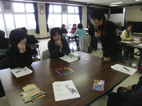 1時間ほど、身近で使われている色の効果を体験していただき、
