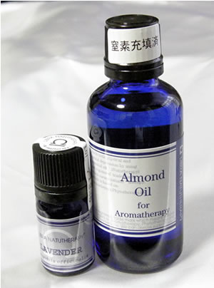 これはキャリアオイルのスイートアーモンドと、ラベンダーの精油。