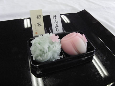 作った和菓子と松江銘菓の若草1個のおまけ付き。