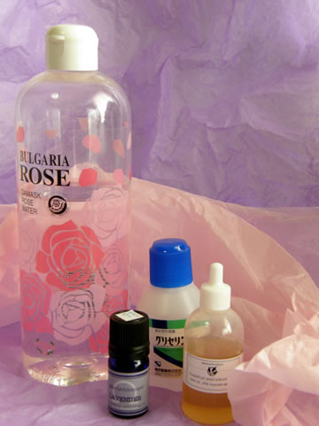 ローズウォーター、ラベンダーの精油、グリセリン、GSE。