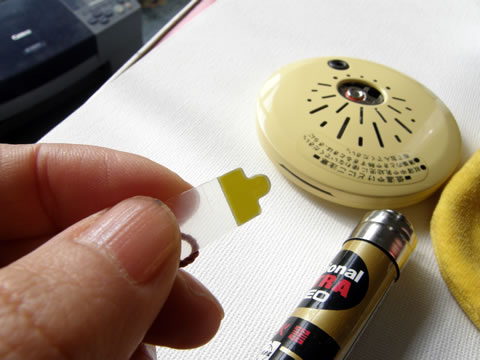プラスチックの先の黄色の部分をカイロの窓に入れてチェック。