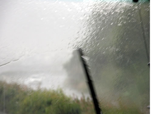 バスに帰れないくらいの大雨です。